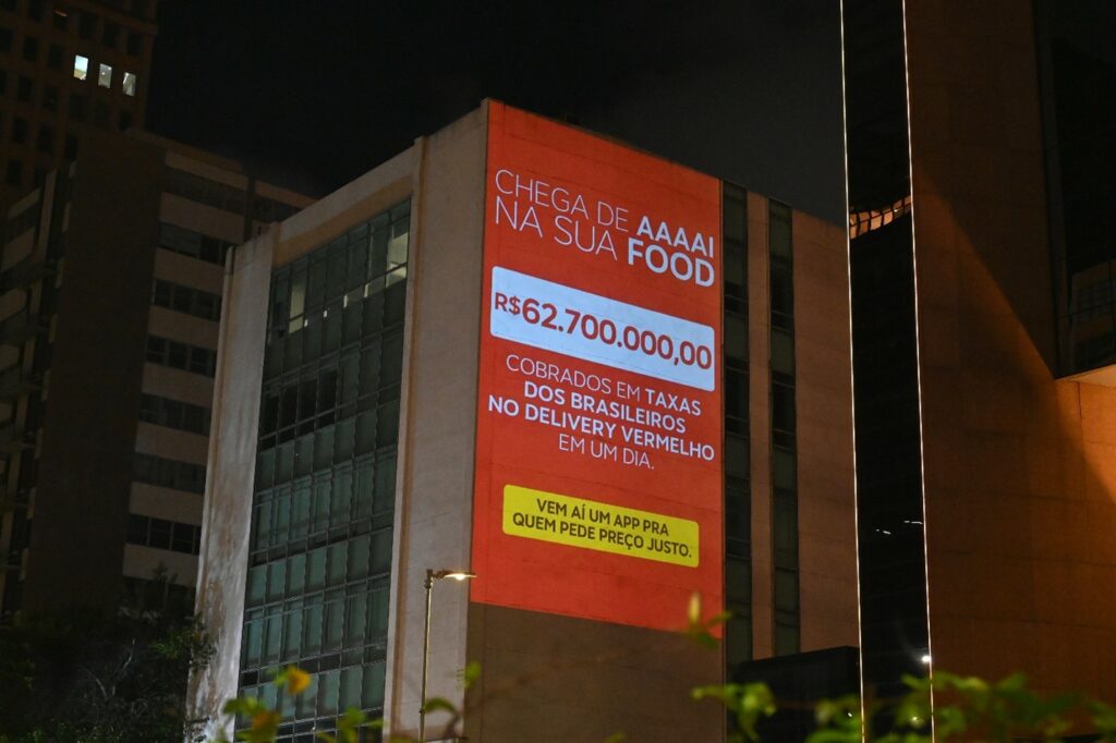 Com perfil assumidamente confrontador, a estreia na capital foi marcada pelo Taxômetro Urbano. A ação projetou em prédios icônicos o valor que consumidores e restaurantes pagam, por dia, em taxas ao principal concorrente.