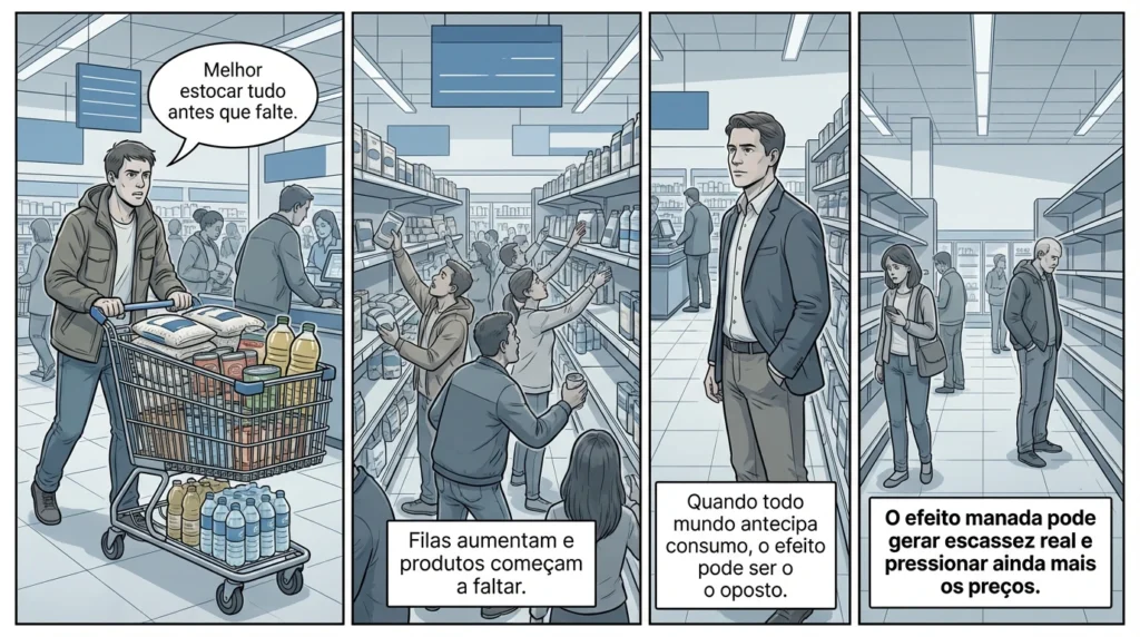 Mas, enquanto o medo se espalha, especialistas e autoridades fazem um alerta: o maior risco pode não estar apenas na crise – mas na forma como o consumidor reage a ela.