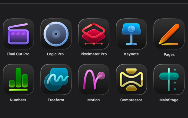 O Apple Creator Studio inclui acesso aos apps de vídeo Final Cut Pro, Motion e Compressor, de música Logic Pro e MainStage, e de fotos e ilustração Pixelmator Pro. A assinatura também desbloqueia recursos de Inteligência Artificial e conteúdos premium nos apps de produtividade da Apple, como Keynote, Pages, Numbers e, futuramente, o Freeform.