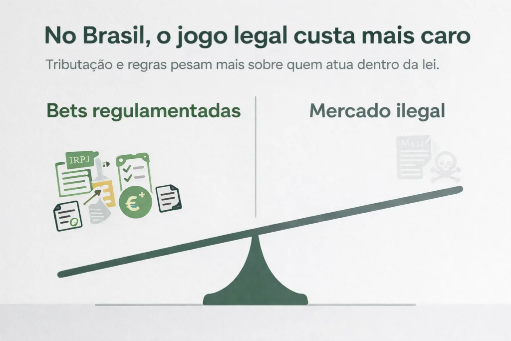 Na prática, o modelo cria um ambiente em que o jogo legal é mais caro, mais burocrático e mais fiscalizado, enquanto o ilegal opera com liberdade quase total.