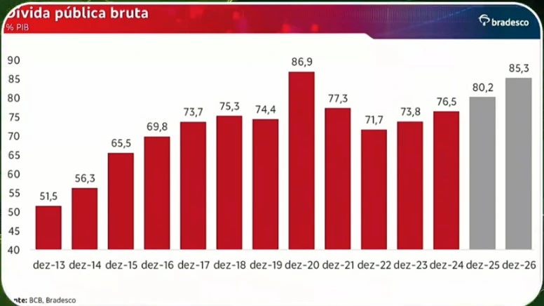 Por fim, o Brasil enfrenta um acúmulo de dívidas que compromete a valorização do real e gera incertezas sobre a economia futura.