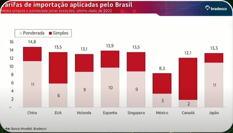 Veja abaixo as taxas de importação aplicadas pelo Brasil aos seus principais parceiros comerciais: