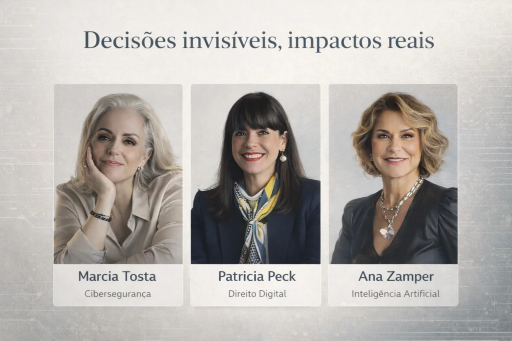 Referência em Direito Digital no Brasil, Patricia Peck acumula mais de duas décadas de atuação em temas como proteção de dados, propriedade intelectual e cibersegurança, além de ter participado ativamente da estruturação de debates regulatórios no país. Já Marcia Tosta construiu sua carreira liderando estratégias de segurança da informação e governança em grandes organizações, levando o tema de risco tecnológico para o centro das decisões executivas e dos conselhos. Complementando essa visão, Ana Paula Zamper atua na formação de lideranças e conselheiros para a Nova Economia, com foco em Inteligência Artificial aplicada à tomada de decisão, conectando estratégia, ética e prática empresarial a partir de sua atuação junto à Saint Paul Escola de Negócios.