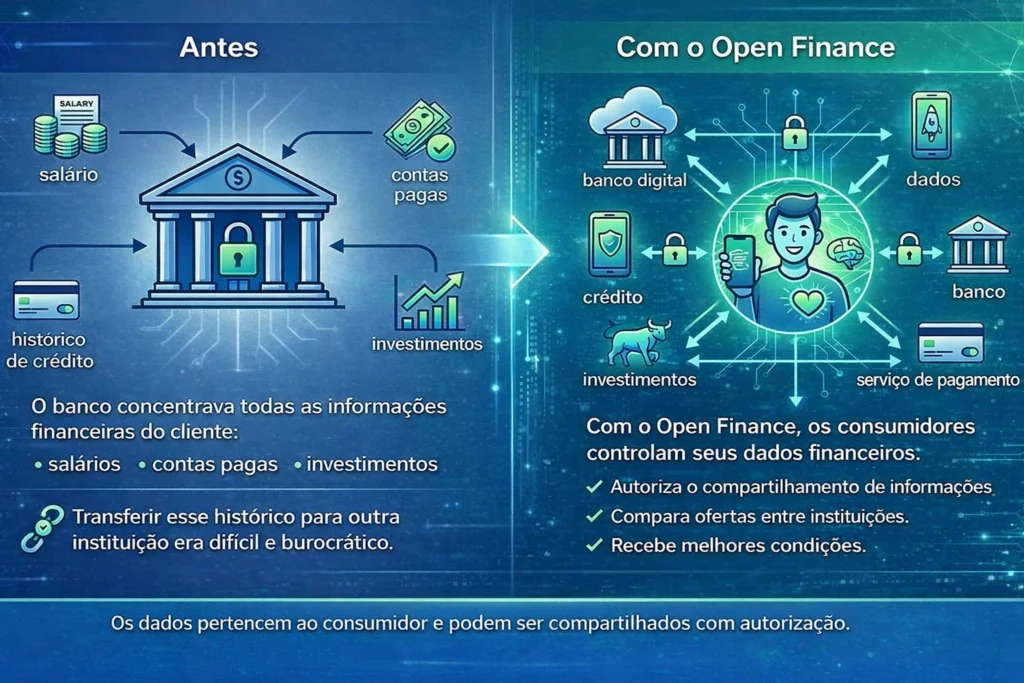 Antes, o banco com o qual você se relacionava detinha todas as informações sobre sua vida financeira: salário, contas pagas, histórico de crédito e investimentos. Por consequência, transferir esse histórico para outra instituição era muito difícil.