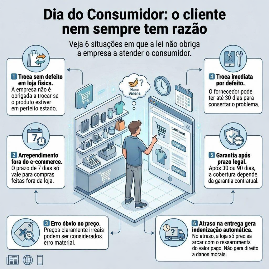 Convencido de que tem direito à substituição, o consumidor argumenta que o Código de Defesa do Consumidor obriga a empresa a aceitar a devolução. O impasse gera frustração, discussão e uma pergunta frequente nas relações de consumo: até que ponto o cliente realmente tem razão?