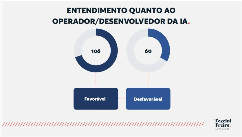 Outro gráfico do estudo da Tozzini Freire mostra que, entre as decisões que analisam o operador ou desenvolvedor da IA: