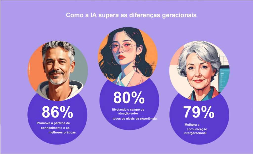 Apesar do cenário de tensão, o estudo aponta um caminho de convergência. Funcionários de todas as idades veem a IA como uma possível força unificadora, desde que usada de forma intencional. Para 86%, a tecnologia pode melhorar o compartilhamento de conhecimento; 80% acreditam que ela ajuda a reduzir lacunas de experiência; e 79% veem potencial para fortalecer a comunicação entre gerações.