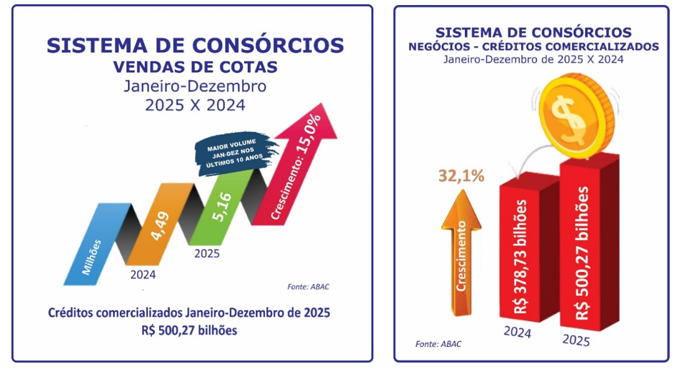 O Sistema de Consórcios encerrou 2025 com resultados inéditos e consolidou um dos ciclos mais positivos de sua história. De acordo com dados da Associação Brasileira de Administradoras de Consórcios (ABAC), o setor superou todas as projeções iniciais e registrou crescimento expressivo em praticamente todos os seus principais indicadores.