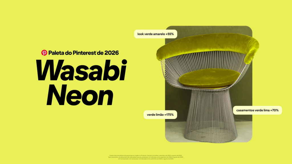 A paleta de cores faz parte de um panorama maior de tendências previstas pelo Pinterest para 2026. Elas vão além da estética visual e atingem comportamentos culturais e sociais.