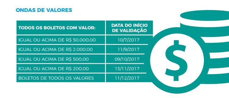 A Federação dos Bancos ainda promete outras três etapas de implantação do sistema, que será concluída em 11 de dezembro deste ano. Nessa data, boletos de todos os valores não precisarão de segunda via e poderão ser pagos em quaisquer bancos. Abaixo, quando a novidade começa a ser implantada a partir dos seus respectivos valores: