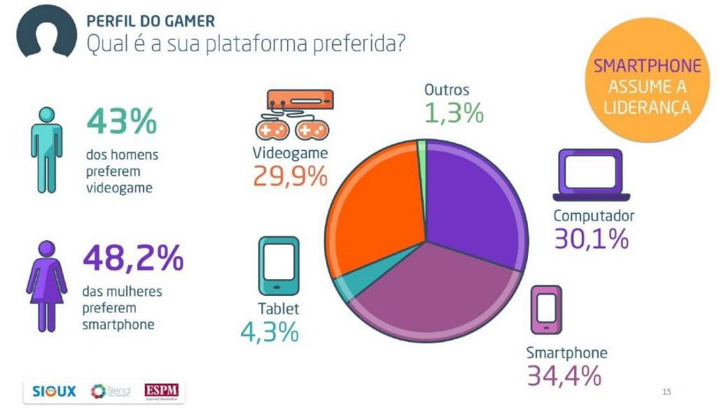 Por ora, no Brasil, a maior parte do público é masculina, de alta renda, que consome tecnologias avançadas para jogos online – os famosos PC Gamers, computadores montados com processadores capazes de performar os jogos mais avançados do mercado.