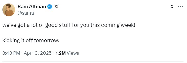 Na última semana, Sam Altman escreveu no X sobre a sua empolgação em anunciar uma nova funcionalidade da IA da empresa.