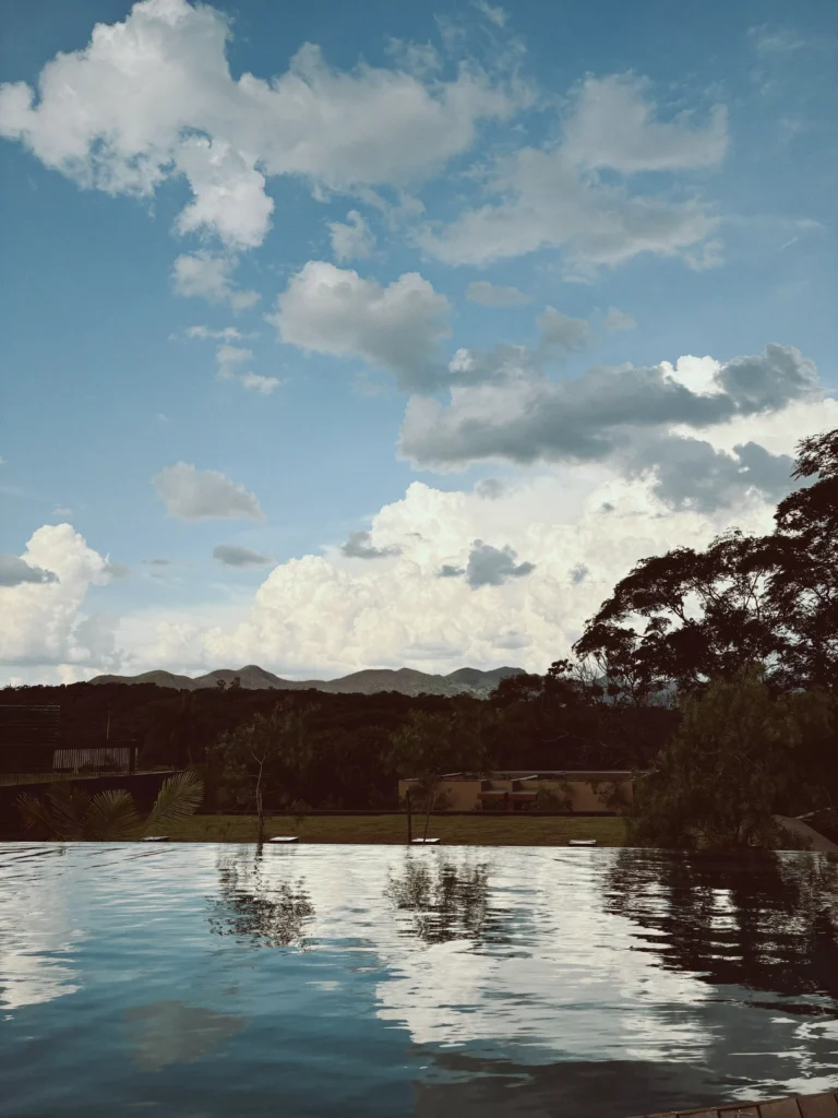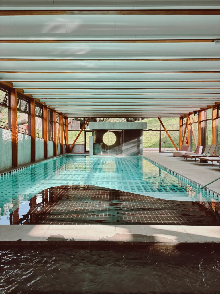 Construído dentro do complexo do instituto, o hotel respira arte. A piscina coberta é, hoje, a maior obra do artista recifense José Patrício, composta por azulejos de cerâmica pintados em diferentes tonalidades. Já os bangalôs, decorados com matérias-primas da região, contam com reproduções de obras de diferentes artistas contemporâneos. Até mesmo o menu do hotel, assinado pela própria CEO – que também é chef de cozinha –, busca trazer a raiz da cozinha mineira com sofisticação.