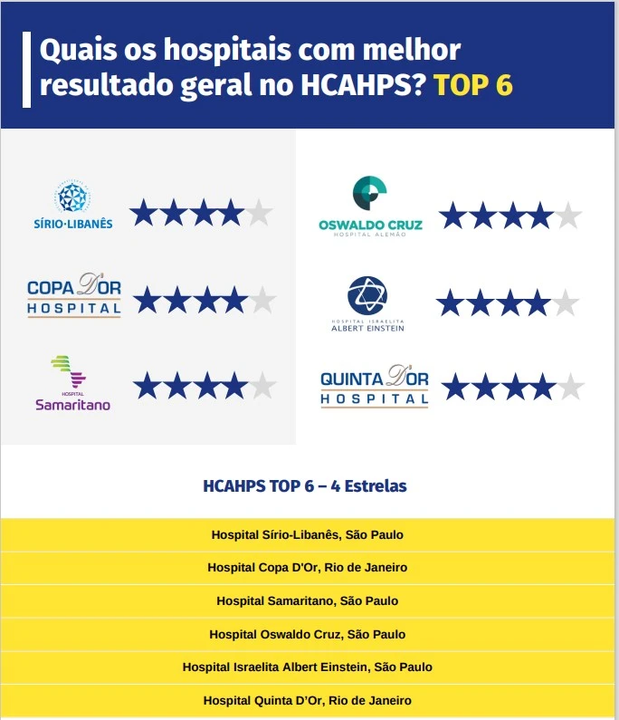 No Brasil, os hospitais com melhores resultados em cada métrica do HCAHPS foram: