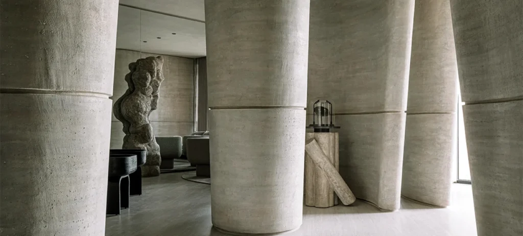 Ambientes de varejo de luxo, em geral, têm um toque teatral, com muita dramaticidade, carregado de luzes, cor e texturas diversas. A Zaura, vai na contramão dessa tendência e revela que a experiência no contato com o luxo e as joias não precisa ser algo extremo ou assombroso. Apesar de despertar nossos instintos para uma aventura de espionagem no interior de uma caverna de pedra, por exemplo, seu tom único na paleta de cores e suas rochas, criam um espaço convidativo e perfeito, que serve como tela na qual as joias se tornam protagonistas vibrantes e encantadoras nessa jornada. Nas palavras de Urvi Patel, “uma verdadeira joia no coração de Amedabade”.