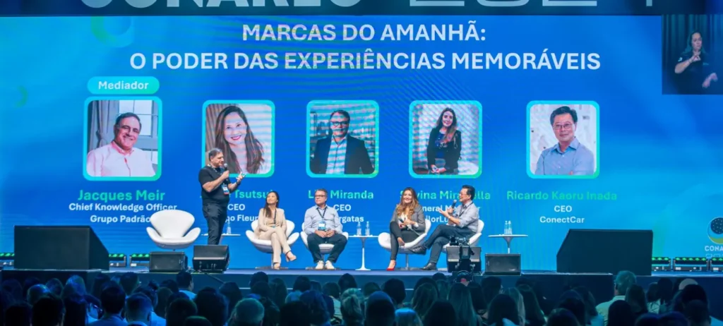 “Fleury, Alpargatas, EssilorLuxottica e ConectCar. Todas essas marcas fazem parte das nossas vidas, e esse, talvez, seja o principal ingrediente da construção de uma marca forte: a capacidade de estar conosco, no nosso dia a dia”, pontua Jacques Meir, diretor de Conhecimento no Grupo Padrão ao apresentar os participantes do painel.