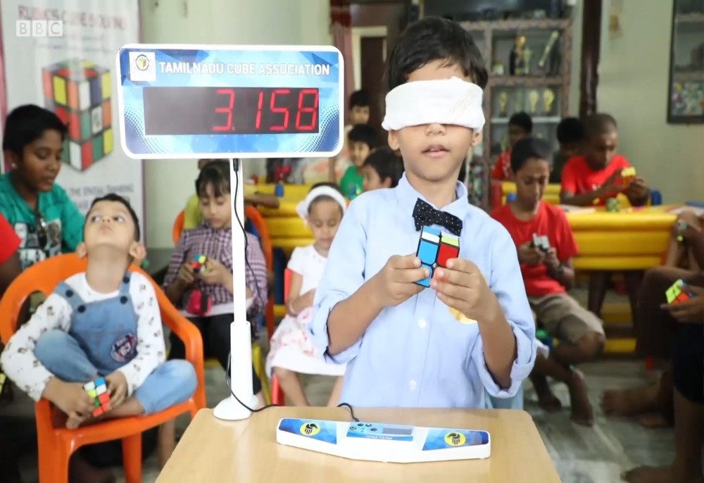 Com apenas 4 anos, V. Sakthivel, da Província de Tamil Nadu, na Índia, é a pessoa mais nova a entrar para o “Limca Book of Records”, um livro dos recordes de seu país. O menino consegue resolver um cubo mágico de olhos fechados em menos de 30 segundos.