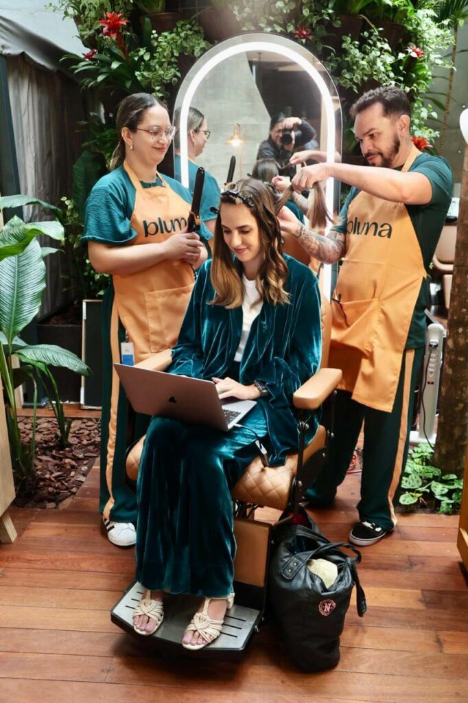 A plataforma também oferece serviços de beleza em eventos, ampliando sua presença nesse segmento em crescimento. “O Bluma tem se destacado em eventos, proporcionando experiências diferenciadas, como massagens e maquiagens, e também está disponível para o público corporativo, oferecendo benefícios personalizados para empresas”, explica. Além disso, a empresa está lançando espaços Bluma em spas e eventos, promovendo uma experiência completa de bem-estar.