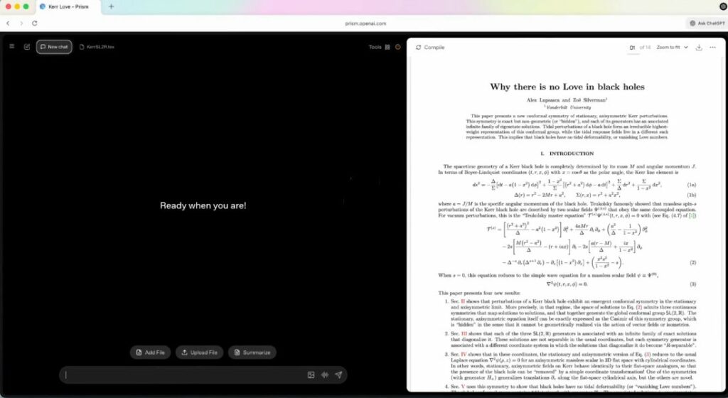 O Prism já está disponível para todos os usuários do ChatGPT e funciona como um editor de texto turbinado por IA, feito sob medida para papers. Ele não faz pesquisa sozinho, mas acompanha o cientista em todo o processo: ajuda a revisar argumentos, ajusta a escrita, busca estudos relacionados e organiza equações e referências sem perder contexto.