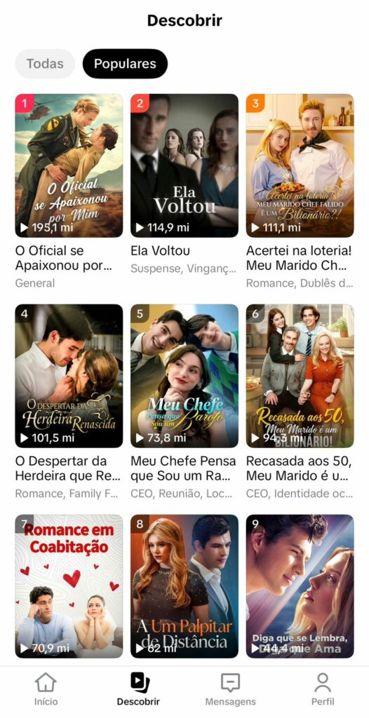 No PineDrama, o usuário pode explorar conteúdos pela aba “Descobrir”, filtrar títulos em alta ou simplesmente consumir uma sequência infinita de recomendações personalizadas. Há ainda histórico de visualização, favoritos e área de comentários, tudo pensado para estimular maratonas rápidas no celular. Até o momento, não há produções brasileiras.