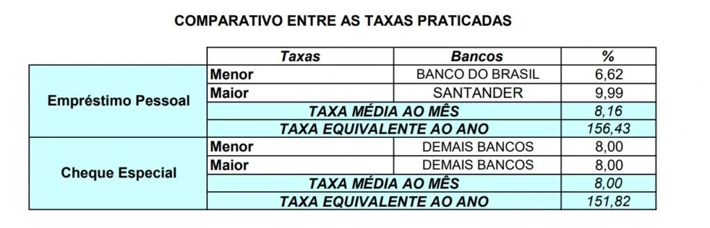 Abaixo, um comparativo entre as taxas de empréstimos e cheque especial. Fique atento e faça escolhas conscientes.