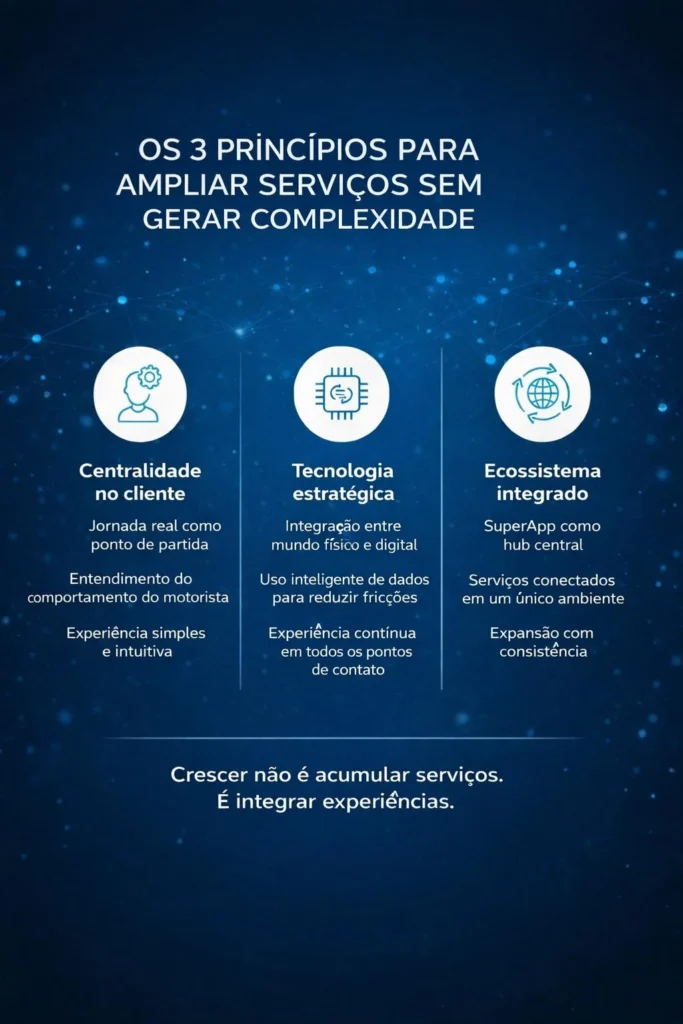 Cada novo serviço é integrado ao ecossistema existente, mantendo uma experiência simples, intuitiva e consistente em todos os pontos de contato. O SuperApp funciona como o hub dessa relação, concentrando serviços, meios de pagamento e benefícios em um único ambiente. Dessa forma, a ampliação do portfólio reduz fricções em vez de gerar complexidade, garantindo uma jornada contínua e alinhada à rotina real do motorista.