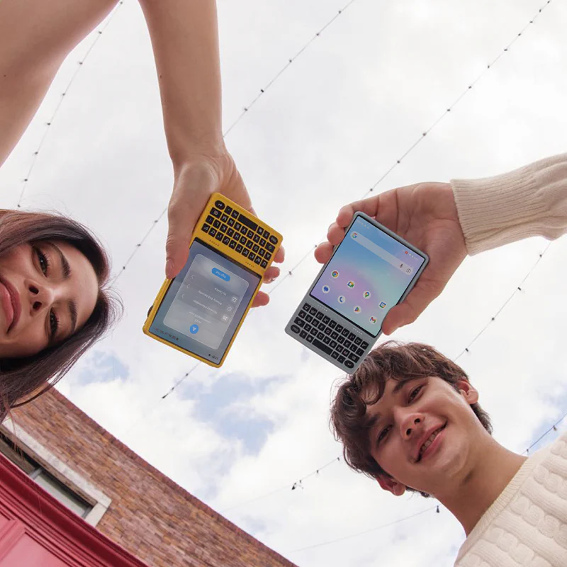Seu teclado acoplável QWERTY revive a experiência da digitação tátil. Ele se conecta magneticamente, transformando o telefone em um micro laptop de bolso. Ao contrário dos teclados touchscreen planos, permite digitar sem precisar olhar constantemente para a tela.