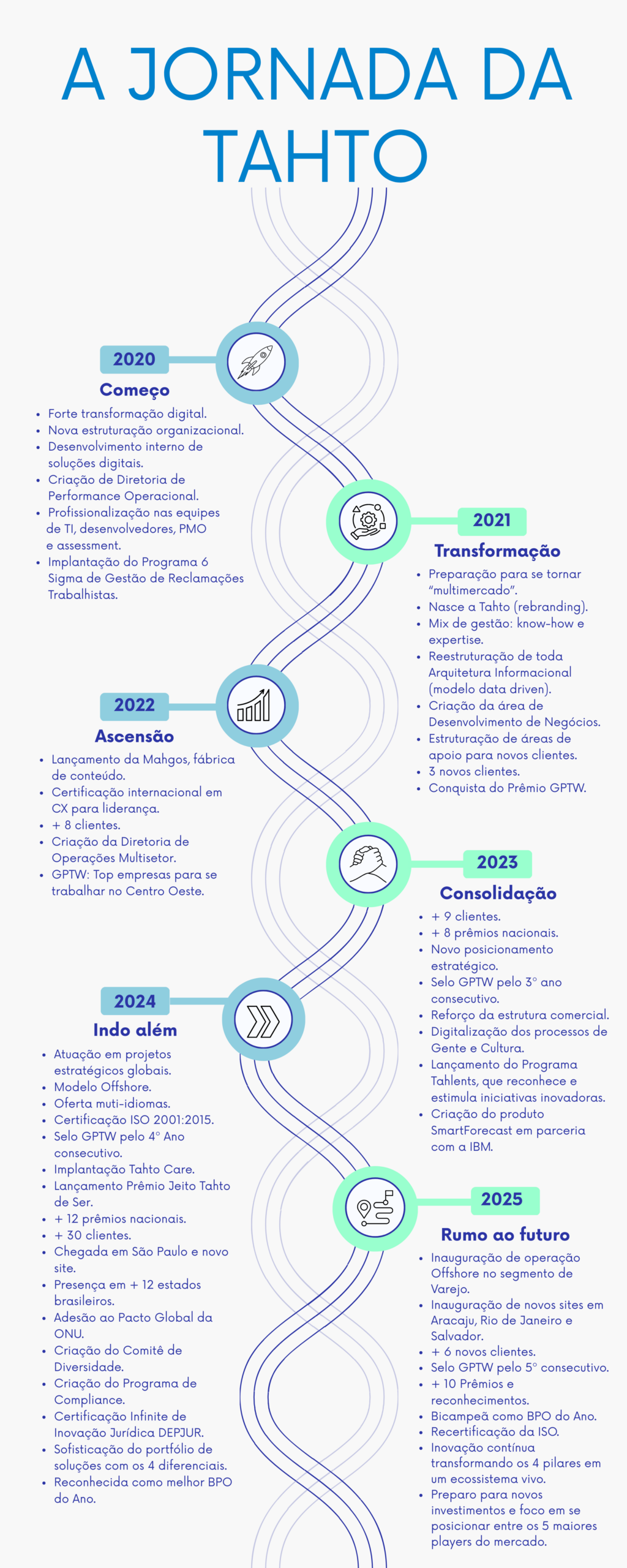 A segurança da fala é fruto de uma estratégia muito bem estruturada, que acompanha a empresa há cinco anos. Após um spin-off, a Tahto deixou de ser monocliente e se abriu para o mercado já com a premissa de autonomia: um dos primeiros movimentos foi garantir uma separação clara – fiscal, financeira e de gestão – em relação ao Grupo Oi.